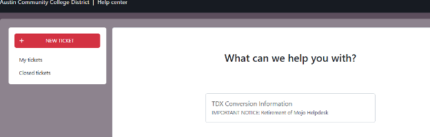Austin Community College District’s (ACC) new service request system, TeamDynamix (TDX), is now live! The Mojo ticketing system has been turned off ahead of its permanent retirement in December.